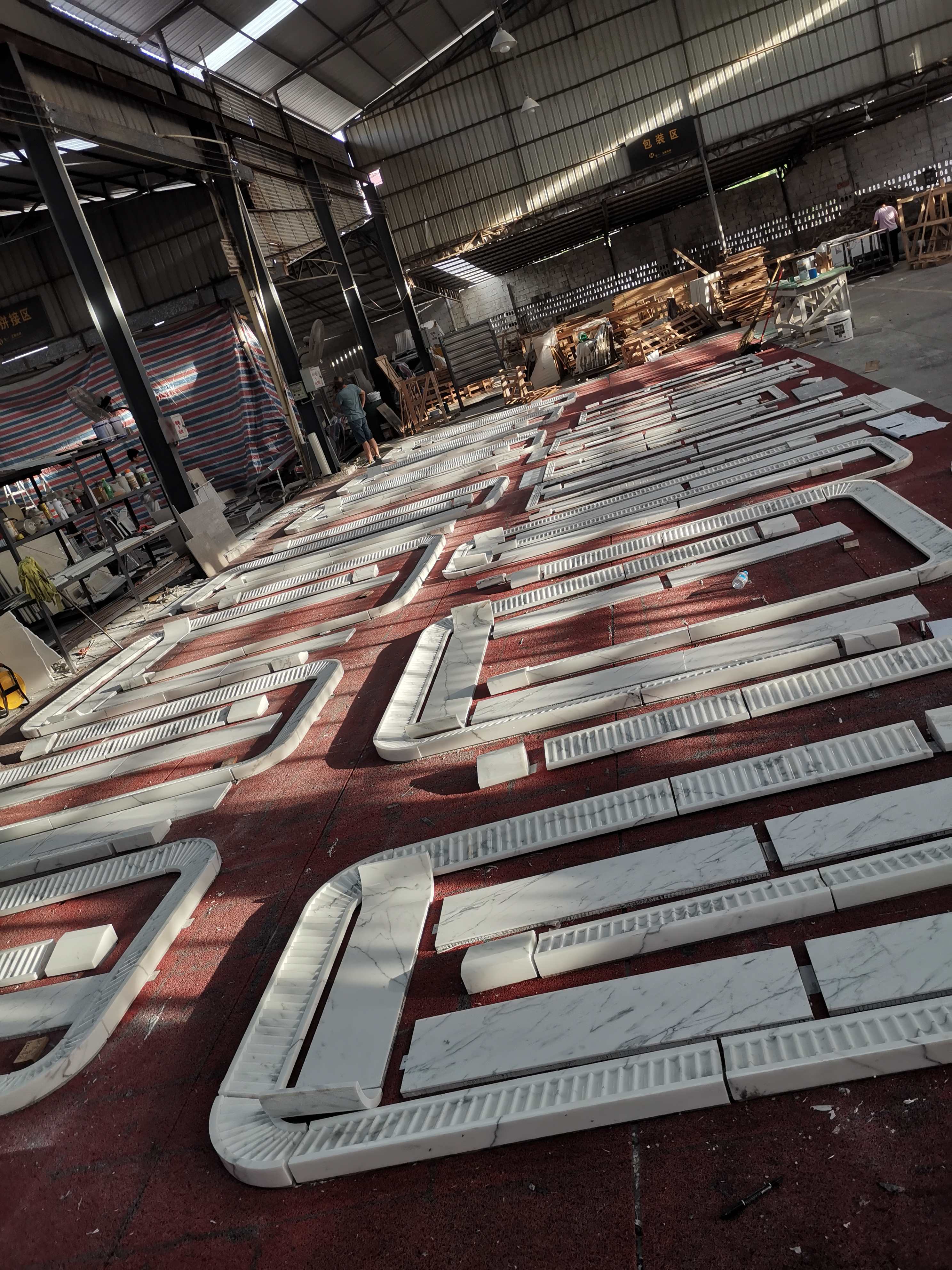 Our profiles are crafted using automated linear profiling machines equipped with custom diamond molding wheels. The stone strips undergo rough shaping followed by multiple stages of fine polishing. We ensure high linearity and precise edge detailing, allowing for easy installation and perfect corner joints.