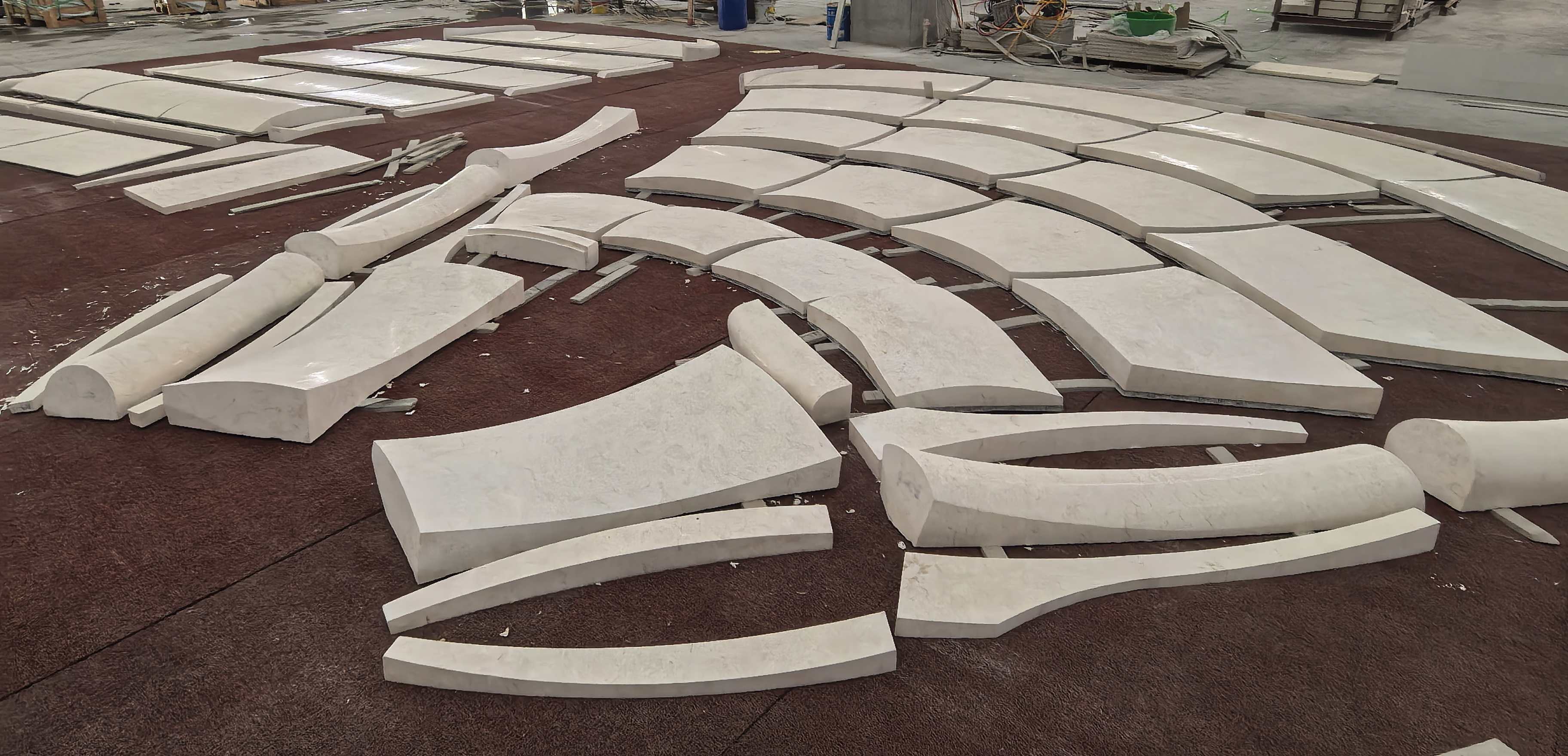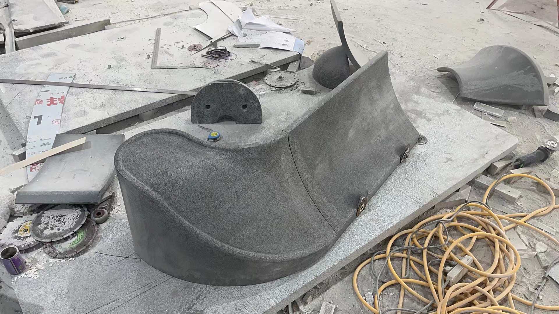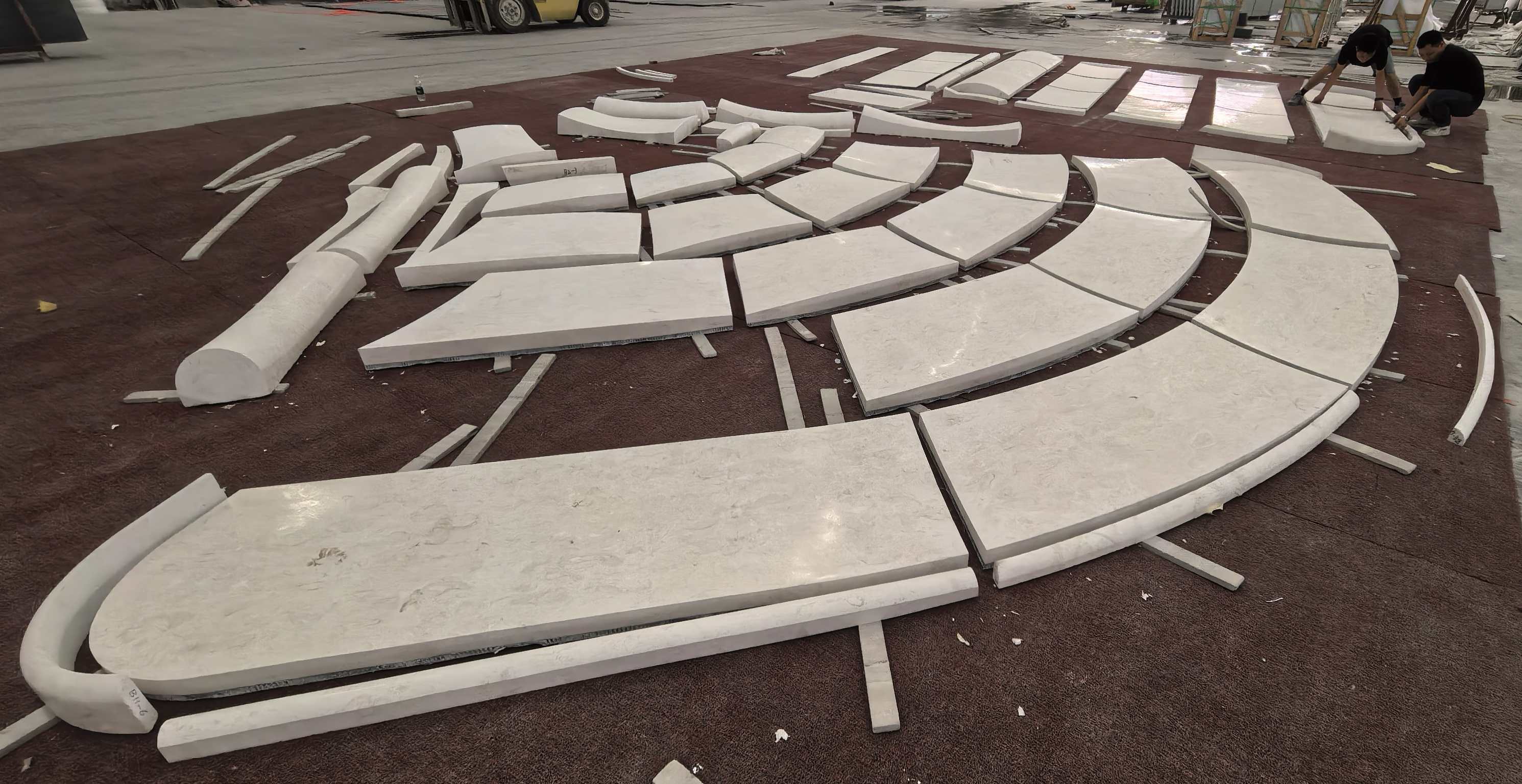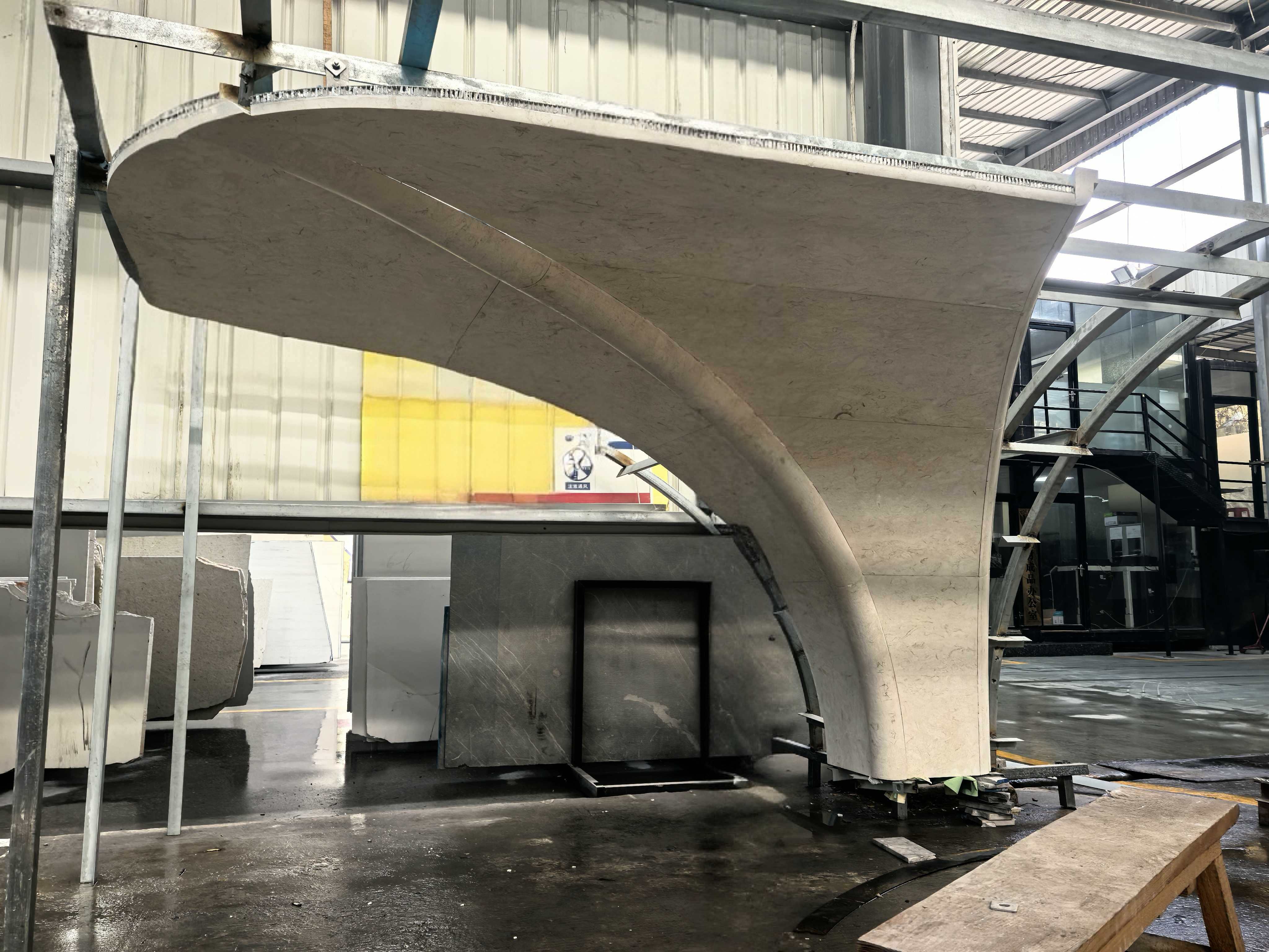 This product relies on state-of-the-art 5-axis CNC machining centers. Unlike simple curved slabs, 3D stone requires complex modeling to carve twisted or double-curved surfaces directly from solid blocks. The process concludes with meticulous hand-finishing to ensure the texture flows naturally across the complex geometry.