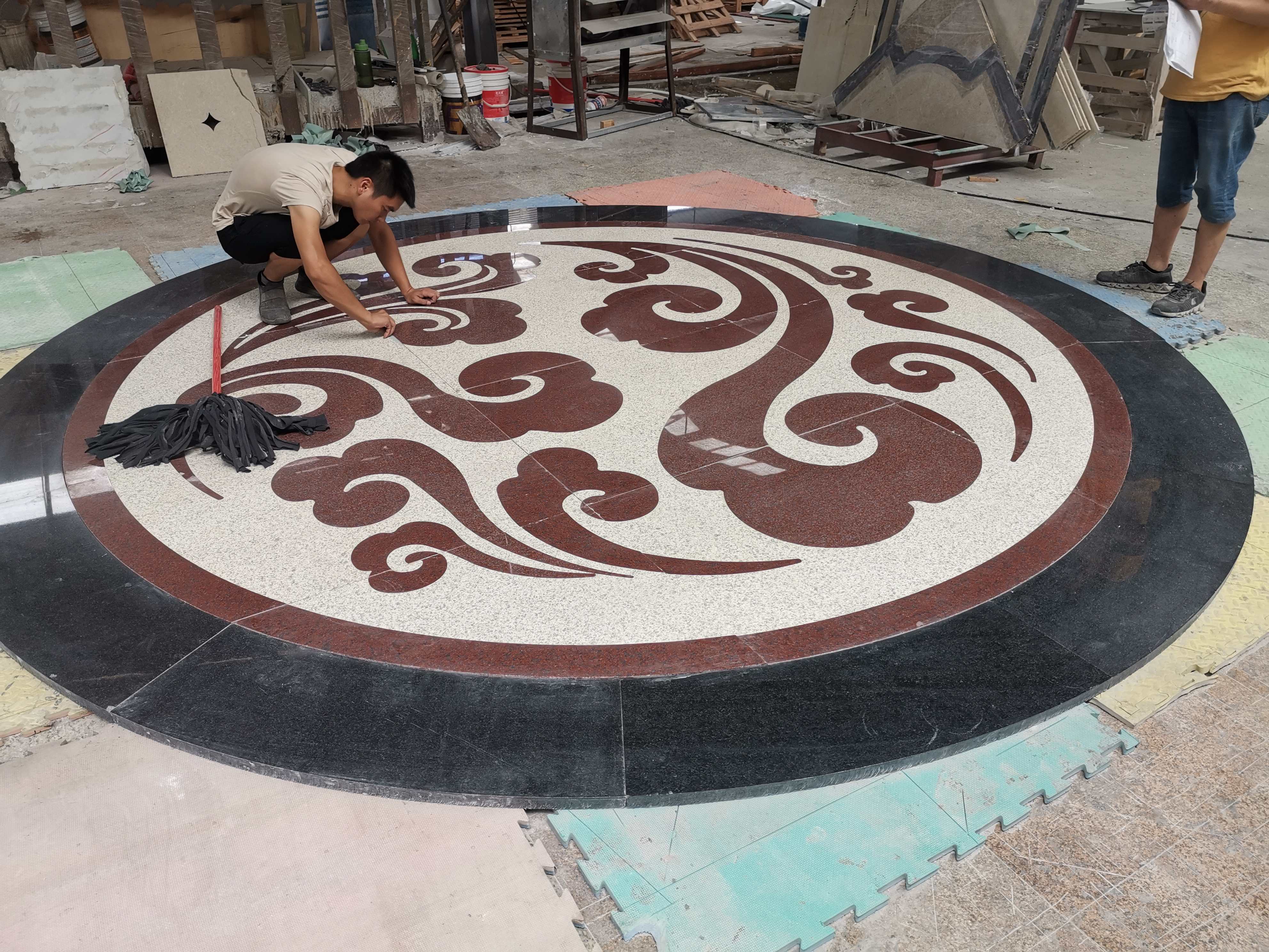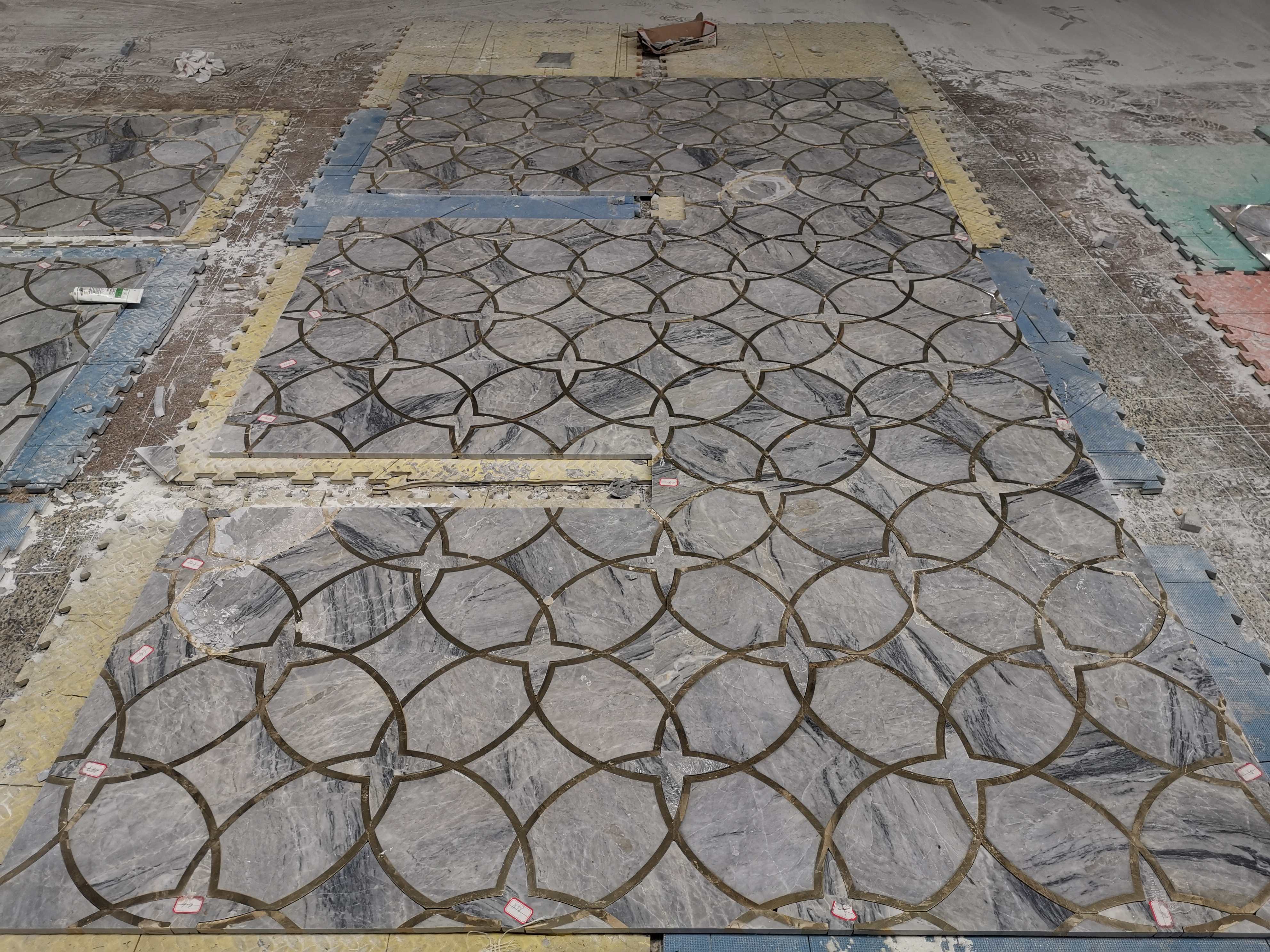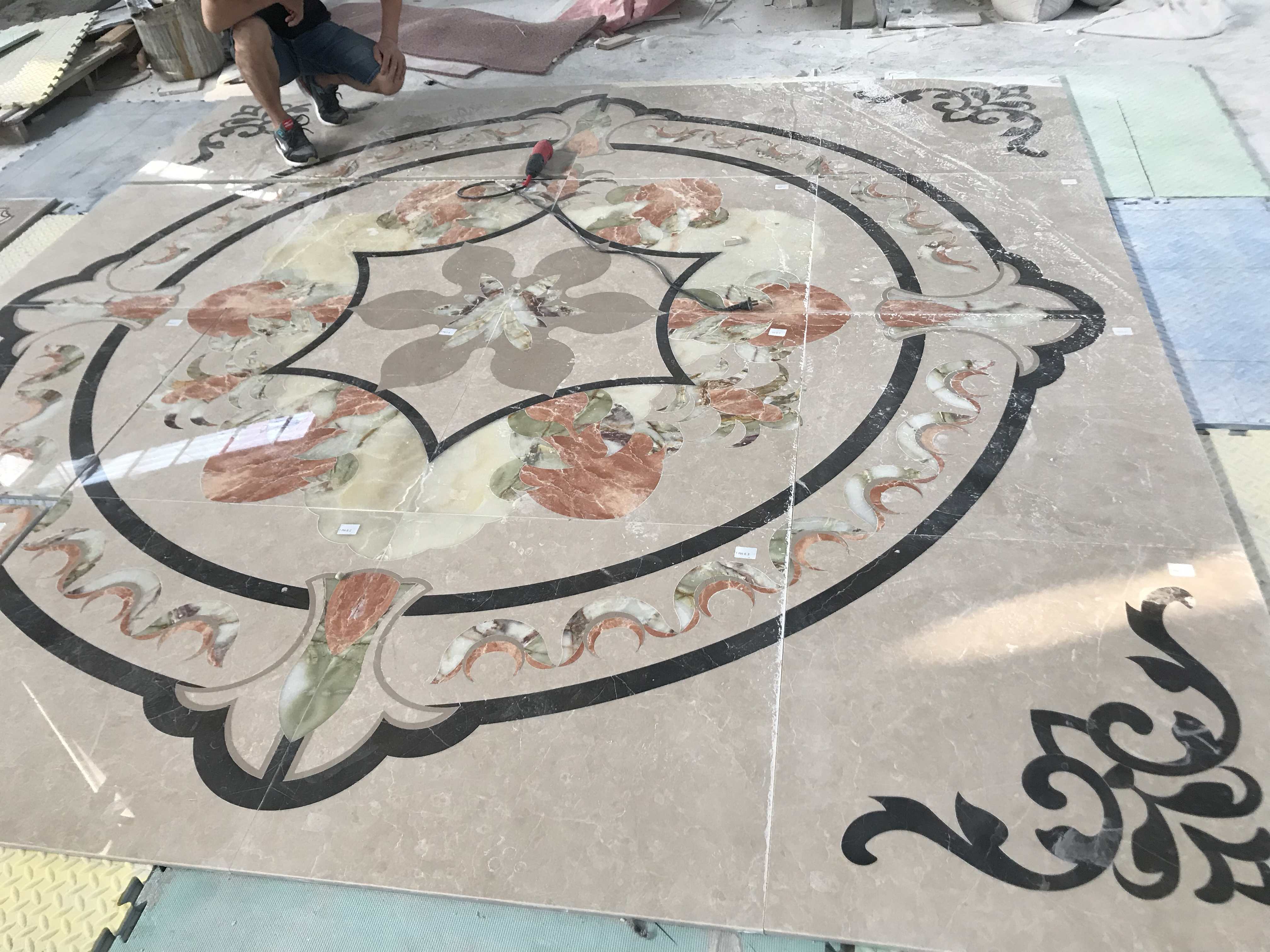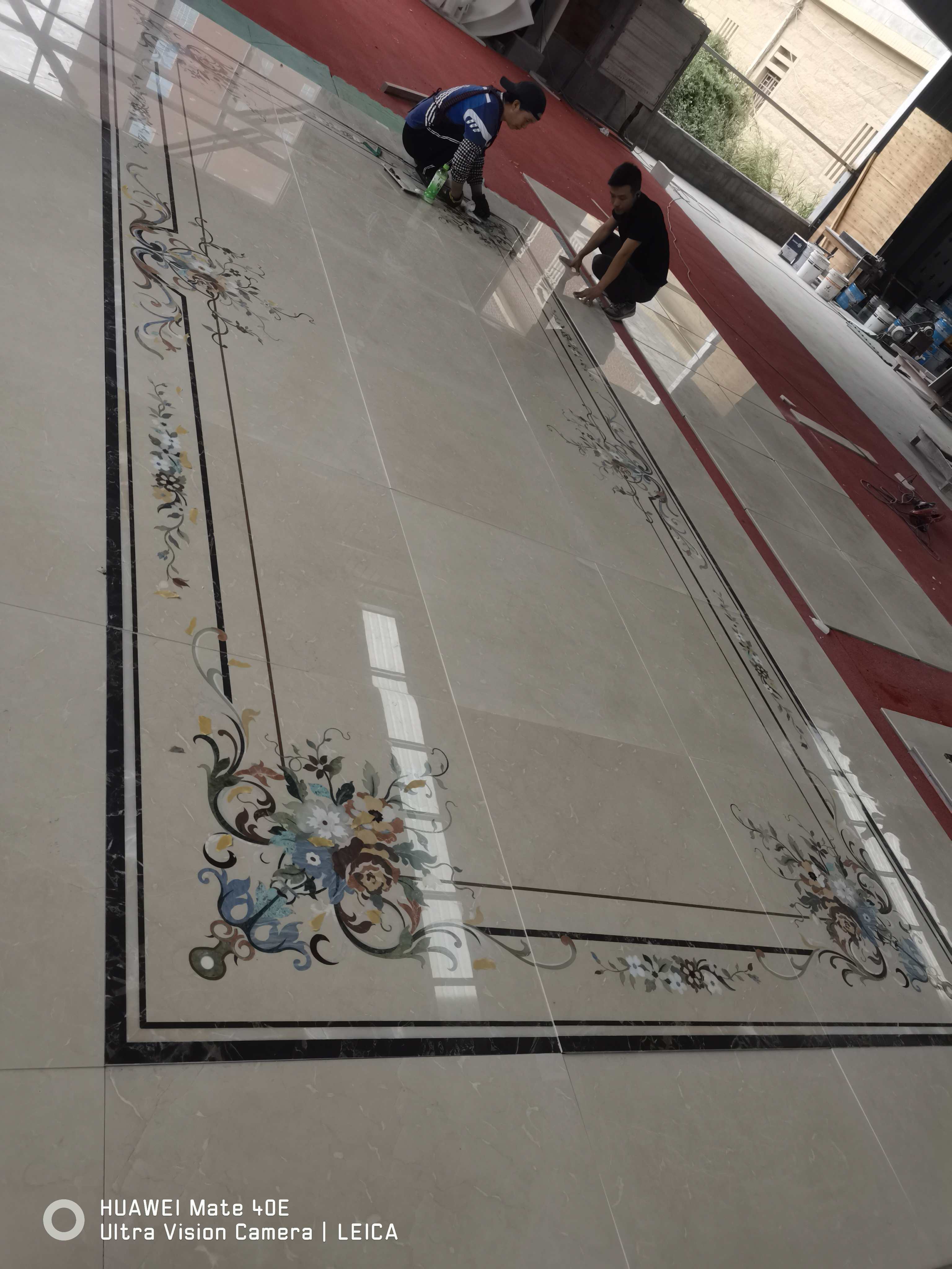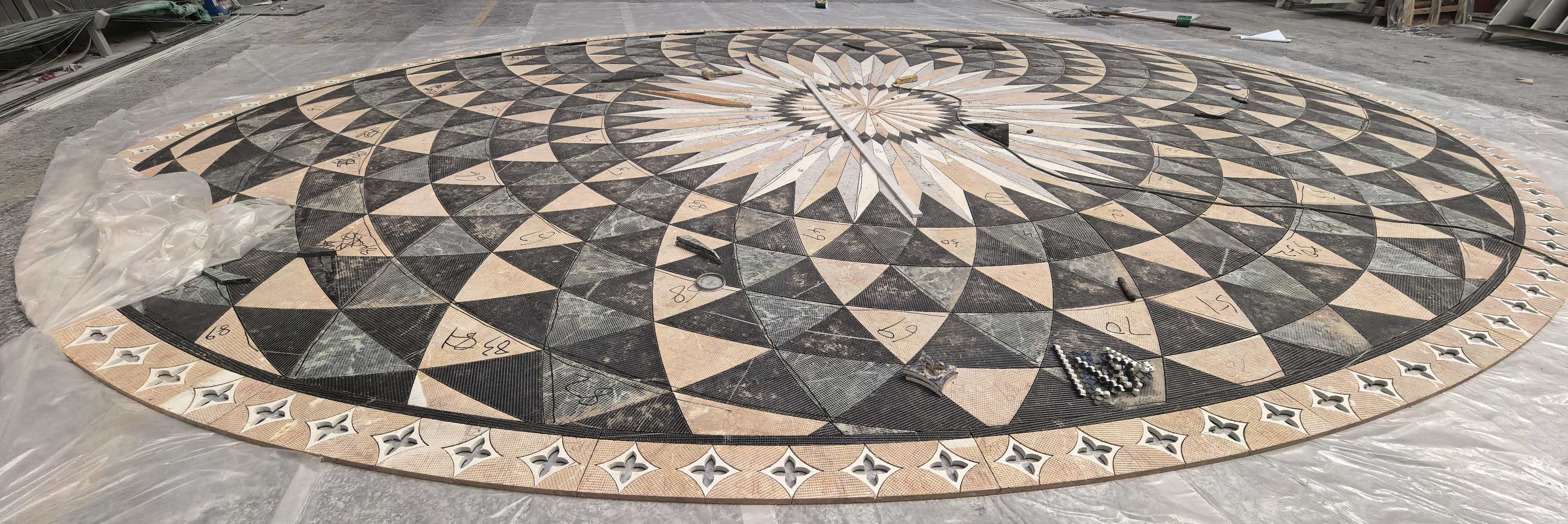 We combine high-pressure Waterjet cutting technology with traditional hand-assembly techniques. The waterjet cuts intricate shapes from various stones with millimeter-level precision. Skilled artisans then manually assemble these pieces into complex patterns, using specialized resin for seamless grouting, followed by a final polish to create a unified surface.