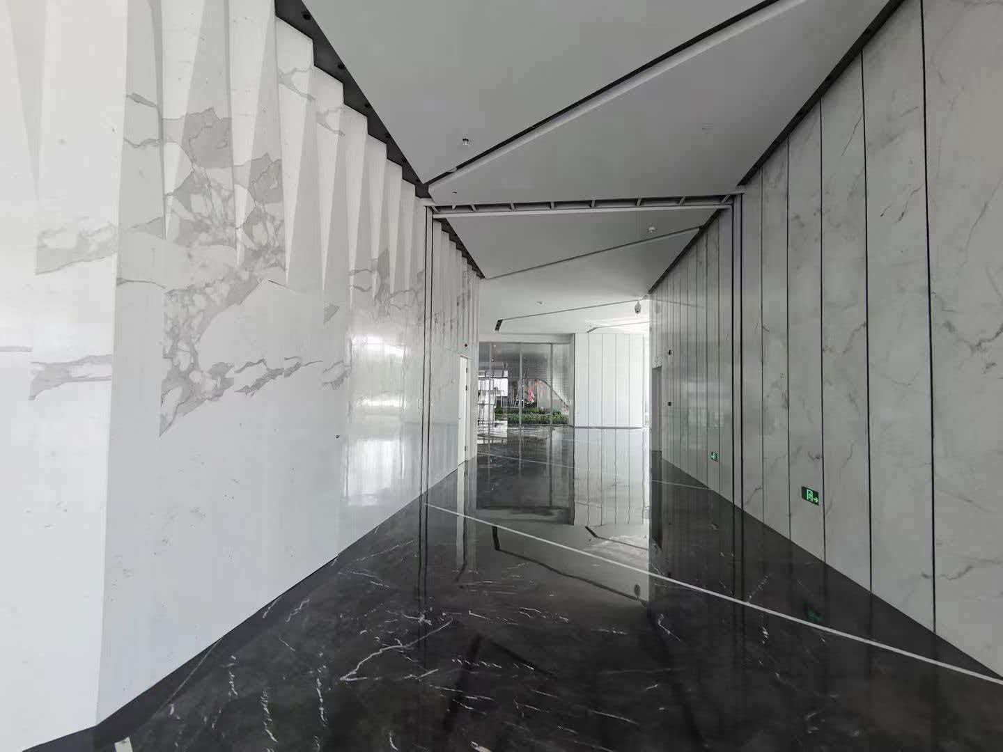 In the vertical city of Taizhou, the Tengda Center stands as a beacon of corporate modernity. The exterior is a soaring curtain of glass, but the interior ground plane is grounded in the geological authority of marble. The design brief called for a lobby that felt futuristic yet timeless—a vision achieved through a stark, monochromatic palette and daring geometric forms.